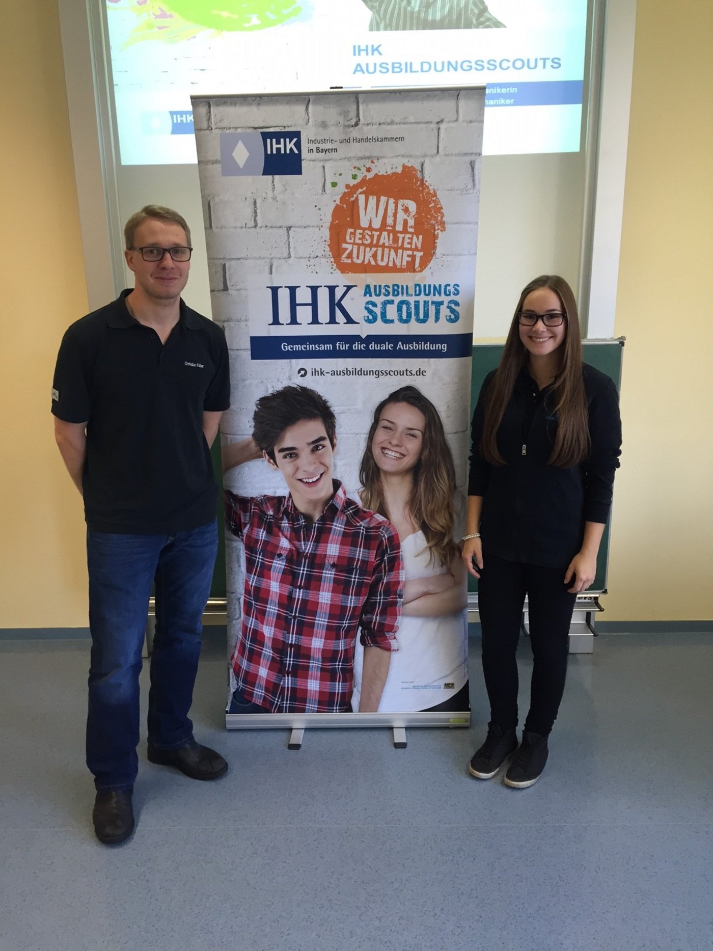 Christian und Sonja kommen zwar aus der gleichen Firma, haben aber ganz unterschiedliche Berufsbilder. Als Verfahrensmechaniker für Kunststoff-und Kautschuktechnik hat Christian einen sehr unbekannten Beruf gewählt. Er erzählt den Schülern wie es dazu kam: Nach seinem Abi hat er erst einmal ein Studium begonnen. Da er sehr Sportwagenbegeistert ist, fiel die Wahl auf "Automobilwirtschaft". "Das Studium war sehr theoretisch und ich konnte mit der reinen Theorie nichts anfangen. Mir fehlte einfach die Praxis. Da mein Ausbildungsbetrieb für die Automobilbranche Teile herstellt und sogar seinen eigenen Sportwagen produziert, habe ich darin ein sehr sehr gute Alternative gefunden und daher mein Studium abgebrochen". Einen wichtigen Tipp hat Christian für die Schüler: "Macht Praktika. So viele wie möglich". Seine Kollegin Sonja ist Werkzeugmechanikerin. Für eine Frau eher ungewöhnlich, möchte man meinen. Auch in der Berufsberatung damals an der Schule wurde ihr eher davon abgeraten. Der Beruf sei "schmutzig" und man müsste zu schwer heben. Dennoch hat sich Sonja durchgesetzt und ist ihrem Interesse gefolgt. Jetzt betont sie "schmutzig werde ich nie und meine Kollegen sind sehr hilfsbereit, da muss niemand schwer heben". Als Werkzeugmechanikerin stellt sie die Utensilien her, die z.B. Christian bei seiner Arbeit benötigt. Für beide ist klar: Nach der Ausbildung geht es weiter. Entweder als Techniker oder Meister. Wir wünschen viel Erfolg.