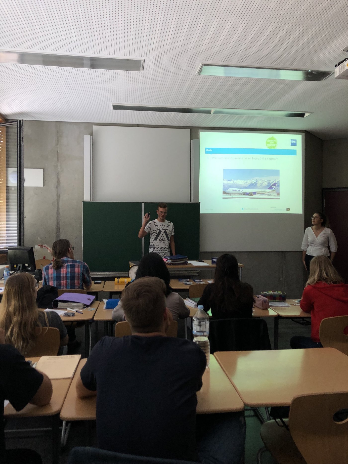 Das eine Ausbildung ein super Karrierestart sein kann, haben Buket und Lars mit einem Teamvortrag den Schülerinnen und Schüler der Max-Grundig-FOS in Fürth eindrucksvoll erklärt. Lars hat sein Abitur in der Tasche, Buket hat ihre MIttlere Reife gemacht, beide haben sich aber bewusst vorerst gegen ein Studium oder eine weiterführende Schule entschieden. Nach der Ausbildung als Kaufmann/frau für Spedition und Logistikdienstleidtung bei PANALPINA in Nürnberg können die zwei die Karrierleiter hochklettern. "Es ist spannend erst mal kennenzulernen, wie so ein großes Unternehmen überhaupt funktioniert. Wir dürfen überall reinschnuppern und das Erlernte sofort anwenden", sagen beide.
