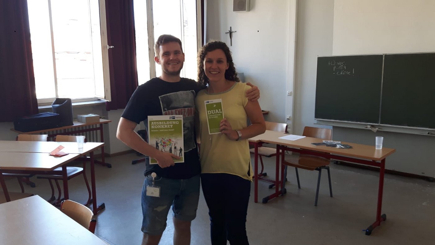 Regionalkoordinatorin Christine Ballmann und AusbildungsScout Alexander von der HauptPharma Amareg GmbH in Regensburg stellten sich den neugierigen Fragen der Schülerinnen und Schülern am Informationstag des Albrecht-Altdorfer-Gymnasiums in Regensburg.