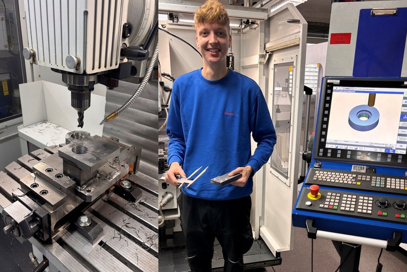 Er bearbeitet an der Fräsmaschine eine Grundplatte für eine Biegevorrichtung und schleift sie anschließend exakt auf Maß. Diese Arbeit erfordert höchste Präzision – und zeigt, wie vielseitig und spannend der Beruf ist.
