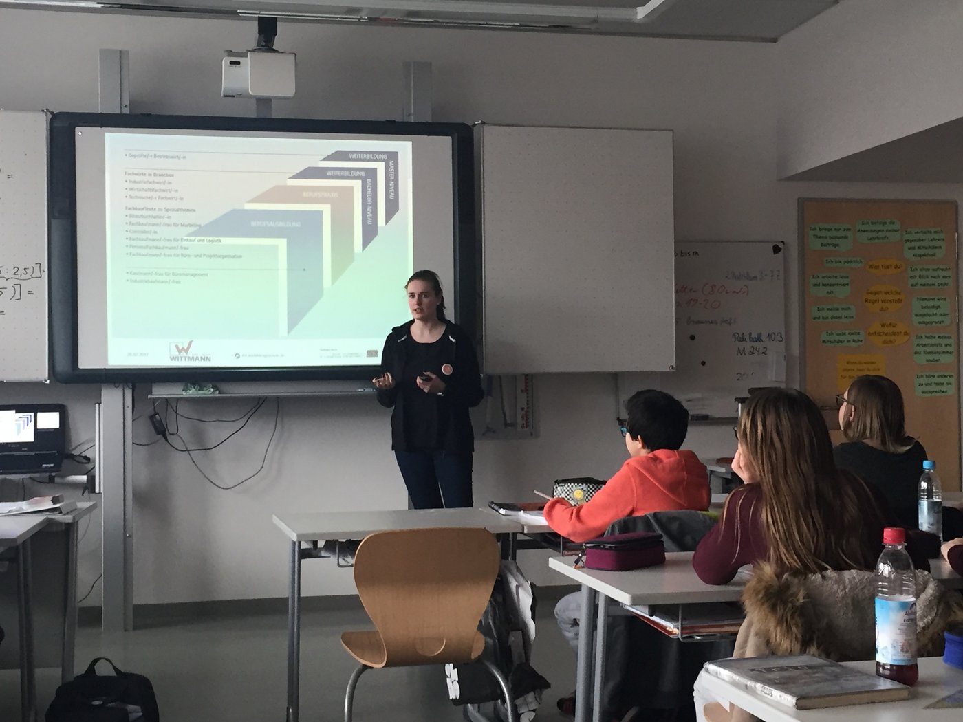 Während meines ersten Vortrags war die Klasse ein bisschen unruhig, deshalb habe ich gezielt Fragen wie "Was willst du denn einmal werden?" gestellt, um die Aufmerksamkeit der Schüler wieder auf mich zu lenken. Mit Erfolg. Nach dem Vortrag kamen leider nicht viele Fragen, was vielleicht daran liegen könnte, dass die Schüler noch gar nicht genau wissen, was sie denn überhaupt einmal machen wollen.