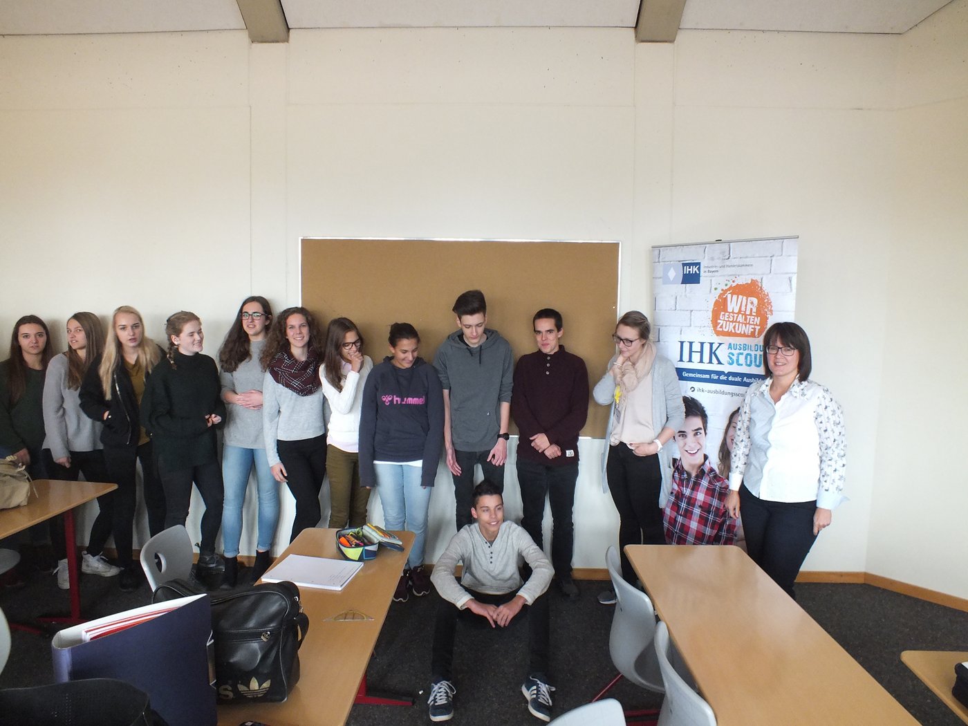 AusbildungsScouts gehen an Schulen, werben für duale Berufsausbildung und informieren über die vielfältigen Möglichkeiten, die dieser Karriereweg bietet.Im IHK-Bezirk Coburg sind zurzeit 13 AusbildungsScouts unterwegs: In Zweierteams besuchen sie die Klassen, berichten über ihre Erfahrungen in der Ausbildung und beantworten die Fragen der Schüler – authentisch, lebensnah und in der Sprache der jungen Leute.Das Gemeinschaftsprojekt der neun bayerischen Industrie- und Handelskammern ist 2015 gestartet. Ziel ist es, bis 2018 rund 100.000 Schüler über die Vielfalt der Ausbildungsberufe und die Chancen einer Ausbildung zu informieren. Das Bayerische Wirtschaftsministerium fördert das Gemeinschaftsprojekt. Zuletzt waren Nina Rudolph (Kauffrau für Büromangement) als AusbildungsScout und Thomas Aue, Leiter Kompetenzzentrum Maschinen- Anlagenbau und Automotive, im Gymnasium Albertinum Coburg zu Gast. Sie stellten den Beruf der Kauffrau für Bürokommunikation und gewerbliche Ausbildungsberufe vor. Schulen, die ebenfalls an einem Besuch der IHK-AusbildungsScouts interessiert sind, können sich an die Regionalkoordinatorin Natalie Riedel wenden.
