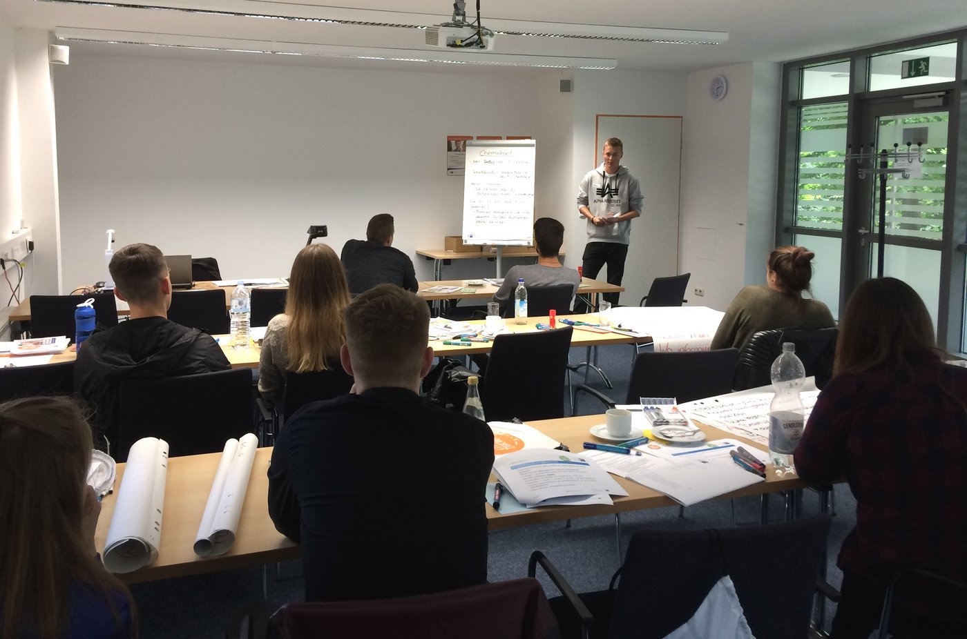Im Seminar wird den Azubis erklärt, worum es im Projekt AusbildungsScouts grundsätzlich geht und welche Rolle sie als Scout haben. Für die Azubis ist dabei wichtig zu erfahren, was von ihnen erwartet wird und wie die Schulbesuche ablaufen.
